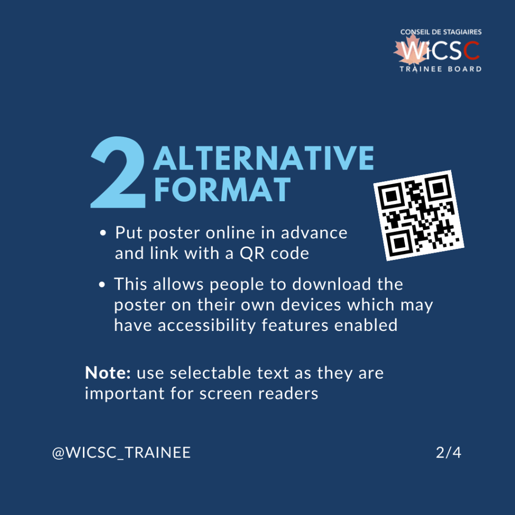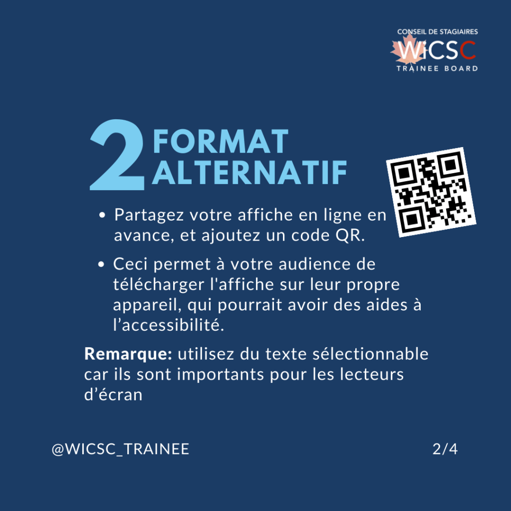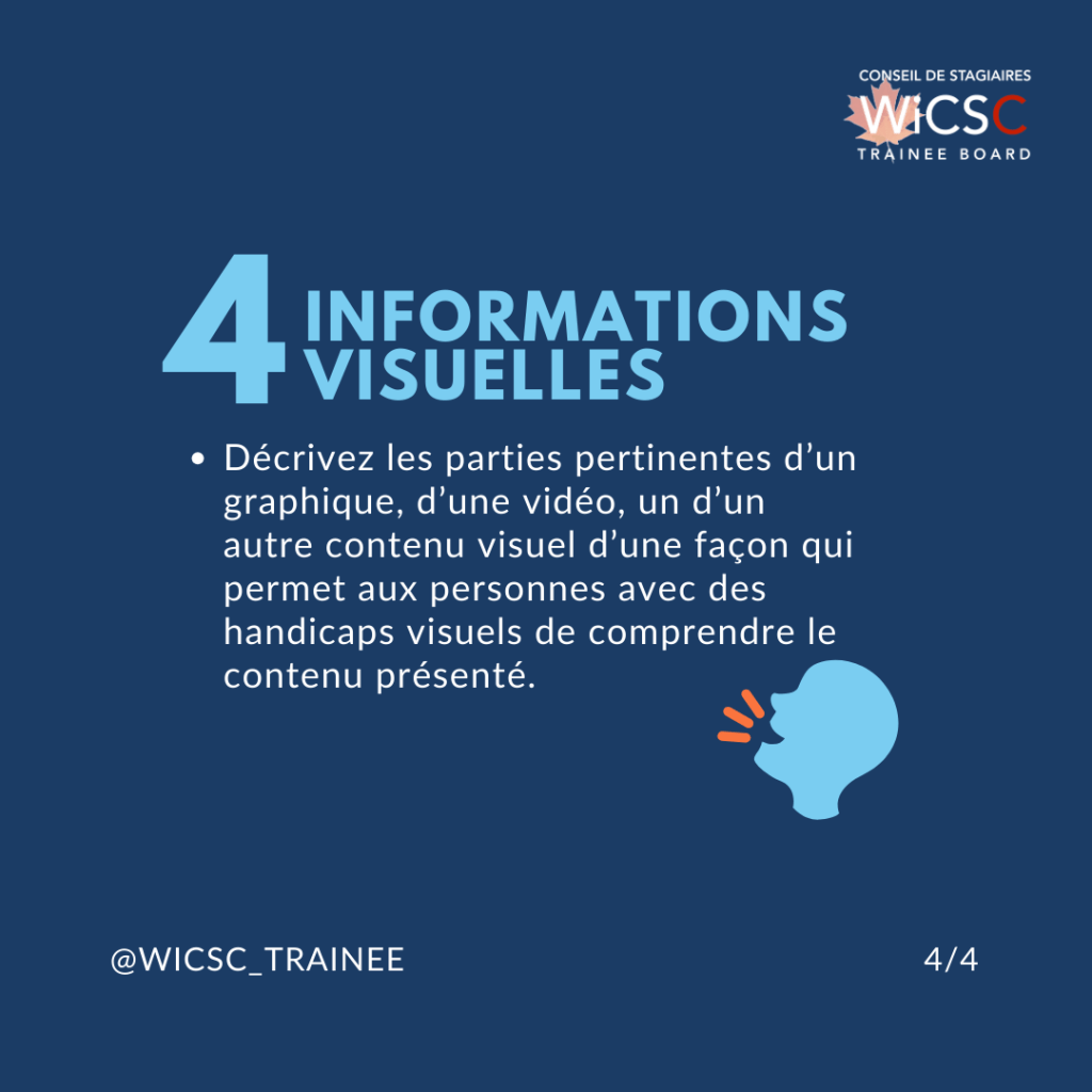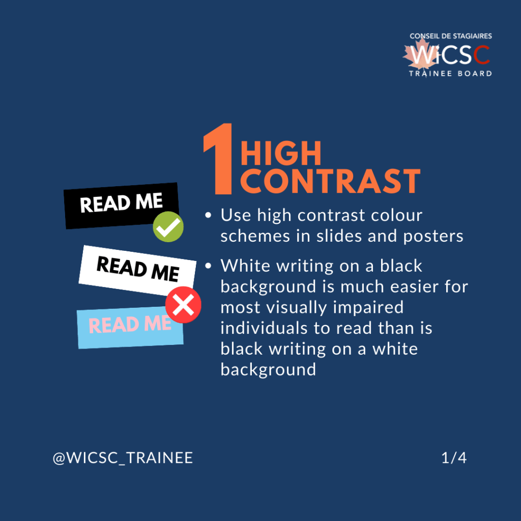 Est-ce que ceci vous a été utile? Visitez notre site wicsc.ca ou suivez-nous sur les réseaux sociaux pour plus de conseils. Pour plus de façons de rendre votre affiche accessible, veuillez visiter: https://www.w3.org/WAI/teach-advocate/accessible-presentations/