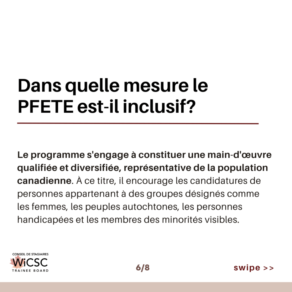 The program is committed to building a skilled, diverse workforce that’s representative of Canada’s population. As such, it encourages applications from individuals belonging to designated groups like women, Indigenous peoples, persons with disabilities, and members of visible minorities.