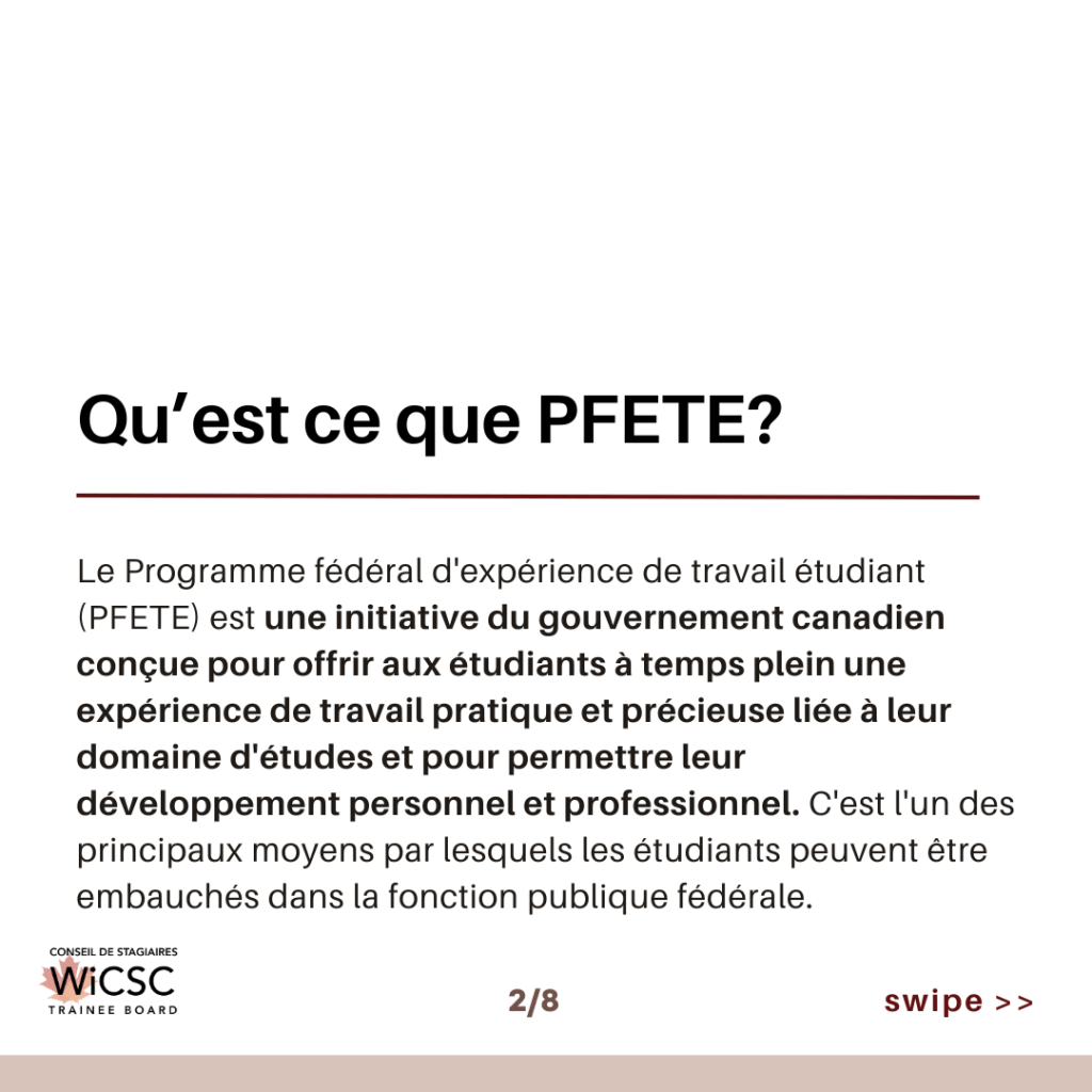The Federal Student Work Experience Program (FSWEP) is an initiative by the Government of Canada designed to provide full-time students with valuable, hands-on work experience related to their field of study and to allow for personal and professional development. It’s one of the main ways that students can get hired into the federal public service.