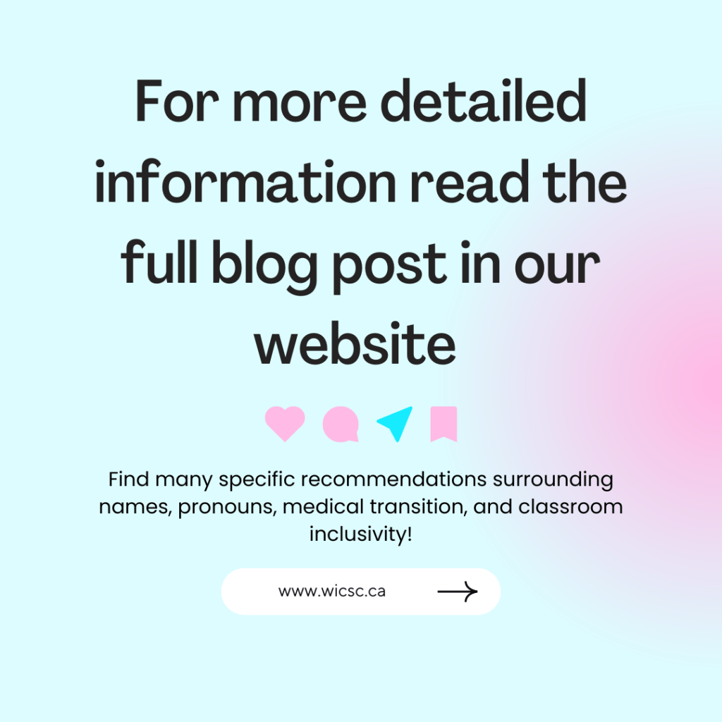 Chez WICSC+ Trainee, nous espérons que cet article de blog vous aidera à vous allier aux étudiants transgenres. Si vous avez trouvé cet article utile, nous vous invitons à le partager ou à le diffuser sur le média social de votre choix. Nous vous encourageons également à partager cet article par courriel avec vos collègues ou les initiatives de l’EDI. Vous pouvez nous trouver sur X ou Instagram @wicsc_trainee.
