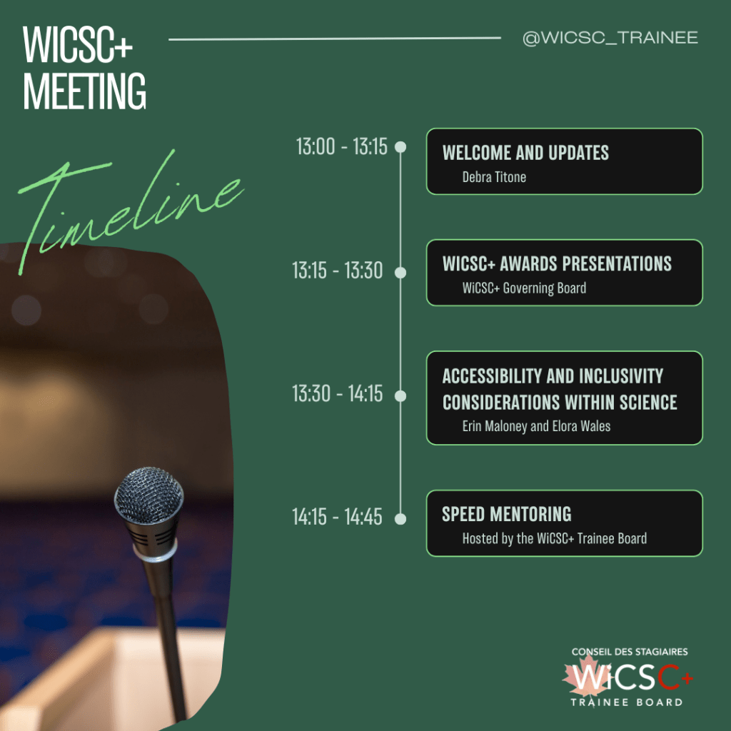 During the 2024 CSBBCS at the University of Alberta, Dr. Erin Maloney and Elora Wales held a workshop on accessibility and inclusivity considerations within science. Around 85 attendees participated in the presentation and joined for the speed mentoring event afterwards.