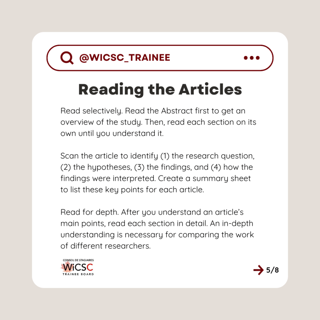 Read for depth. After you understand an article’s main points, read each section in detail. An in-depth understanding is necessary for comparing the work of different researchers.