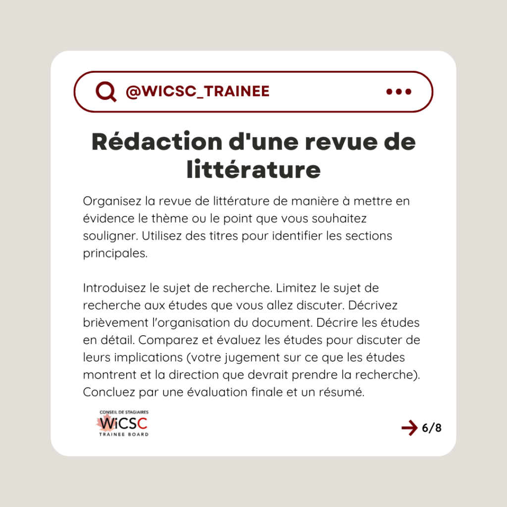 - Adapté du document « Writing a Psychology Literature Review » du Centre de rédaction en psychologie de l’Université de Washington.