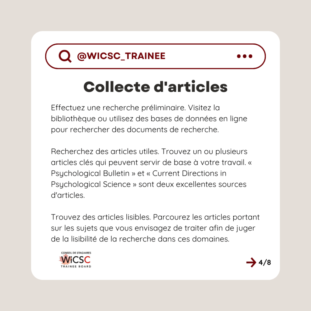 Recherchez des articles utiles. Trouvez un ou plusieurs articles clés qui peuvent servir de base à votre travail. « Psychological Bulletin » et « Current Directions in Psychological Science » sont deux excellentes sources d’articles.