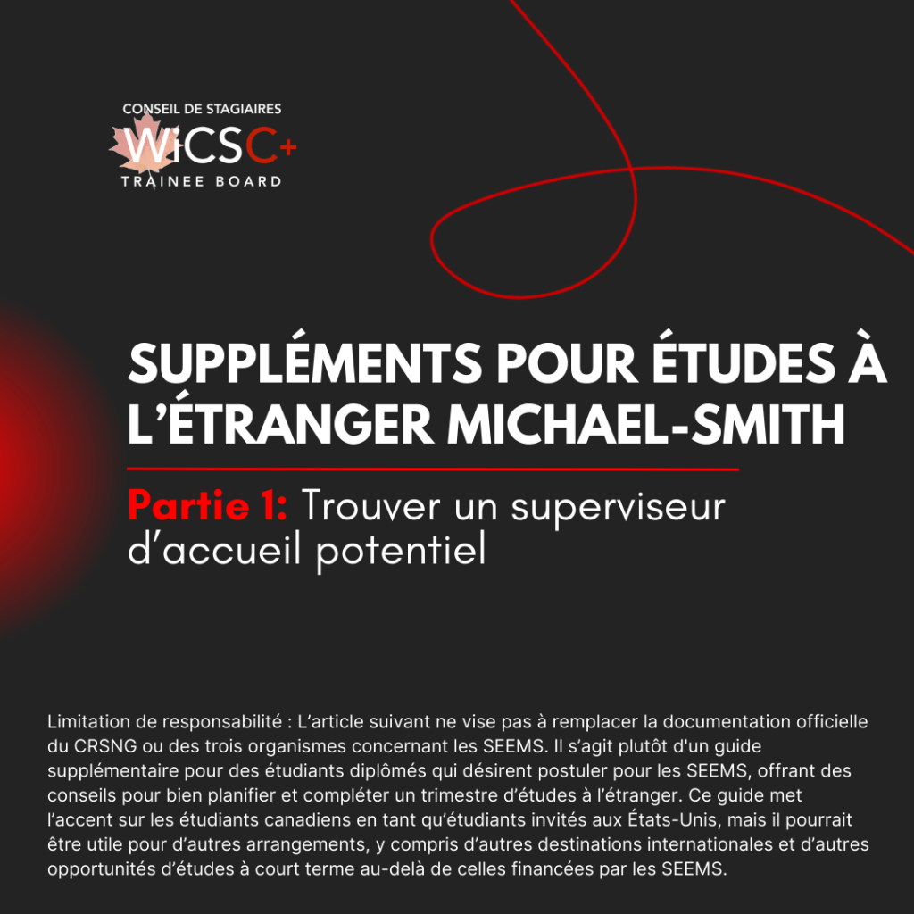 L’article suivant ne vise pas à remplacer la documentation officielle du CRSNG ou des trois organismes concernant les SEEMS. Il s’agit plutôt d’un guide supplémentaire pour des étudiants diplômés qui désirent postuler pour les SEEMS, offrant des conseils pour bien planifier et terminer un trimestre d’études à l’étranger. Ce guide met l’accent sur les étudiants canadiens en tant qu’étudiants invités aux États-Unis, mais il pourrait être utile pour d’autres arrangements, y compris d’autres destinations internationales et d’autres opportunités d’études à court terme au-delà de celles financées par les SEEMS.