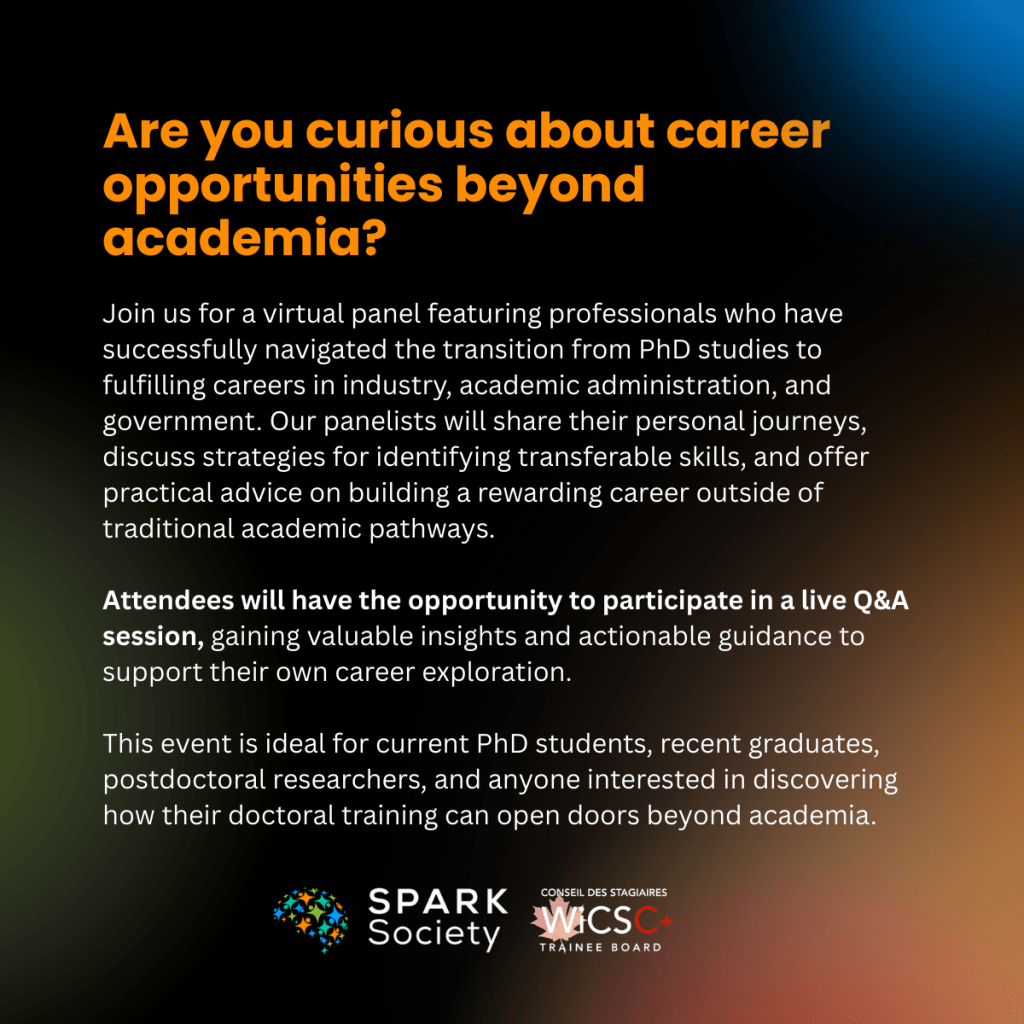 Are you curious about career opportunities beyond academia? Join us for a virtual panel featuring professionals who have successfully navigated the transition from PhD studies to fulfilling careers in industry, academic administration, and government. Our panelists will share their personal journeys, discuss strategies for identifying transferable skills, and offer practical advice on building a rewarding career outside of traditional academic pathways.